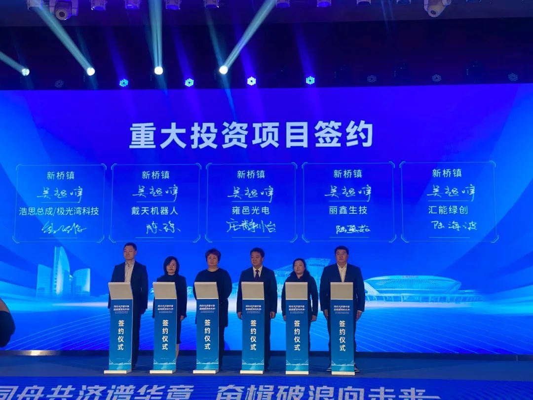 良好的营商环境吸引优质企业和项目落子新桥并扎根发展。大会上,高端装备企业浩思总成、半导体企业雍邑光电、机器人企业戴天、时尚消费品企业丽鑫生技、新能源企业汇能绿创5个重大投资项目集中签约,为新桥经济积蓄发展增量。
