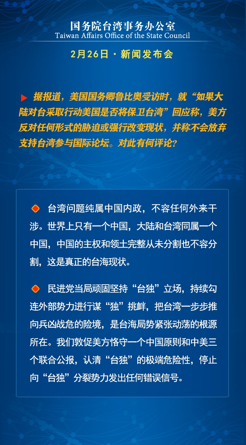 国台办:民进党当局以武谋独、倚外谋独,让台湾变成“火药桶”