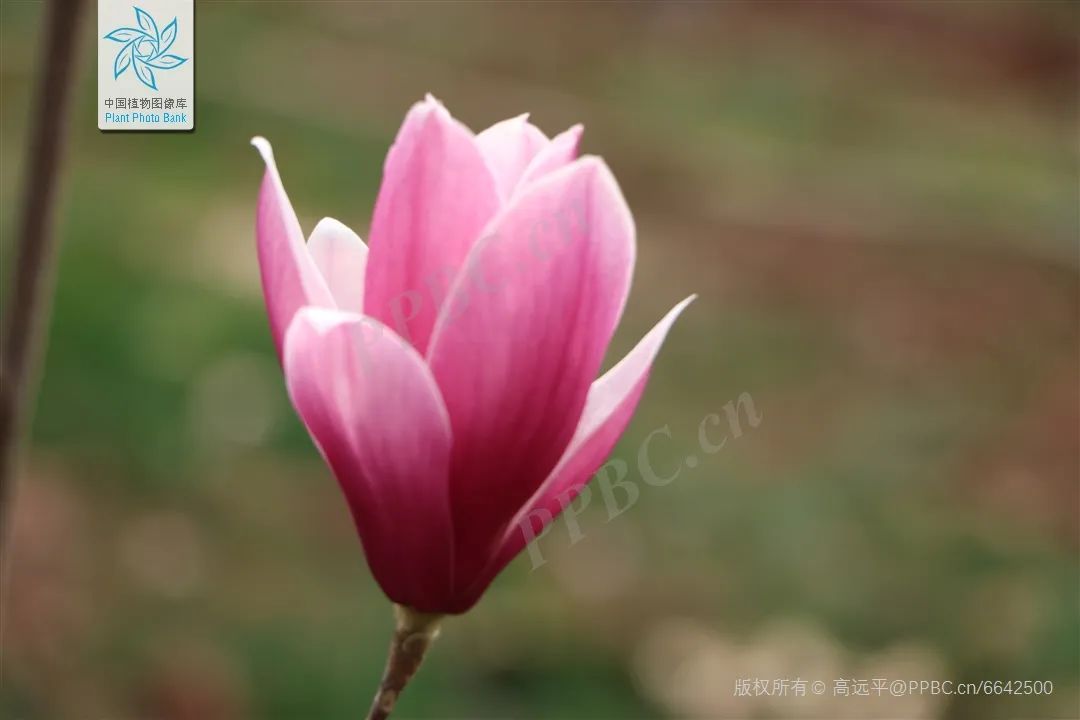 辨识点:花期紧随白玉兰,花瓣内白外紫或粉白渐变,花形似郁金香。
