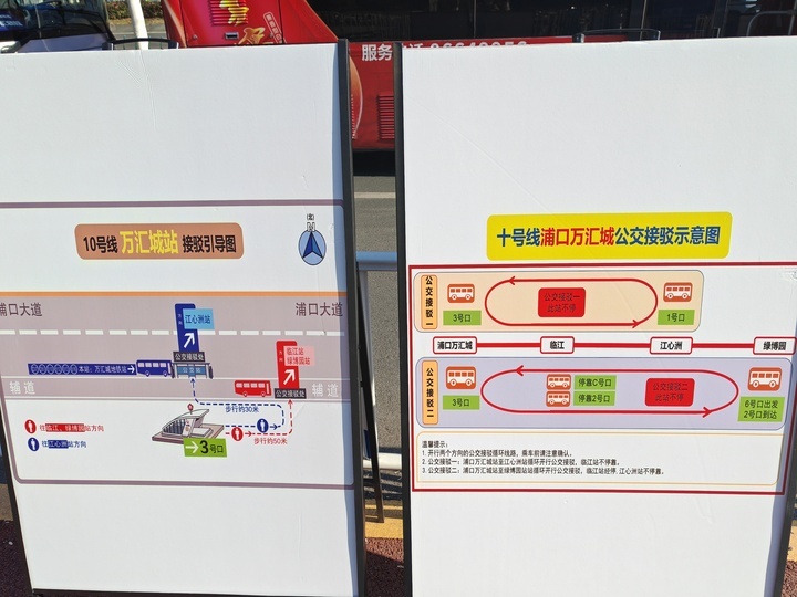 在绿博园地铁车站中,记者注意到站台上还在不停播放转乘公交接驳车的信息,在开往江北方向的一侧护栏上还贴着不少告示牌,提醒着乘客在6号出口进行换乘。据车站工作人员介绍,今晚下班前他们就会将站内的转乘告示牌撕掉,明天这里将恢复以往的状态。