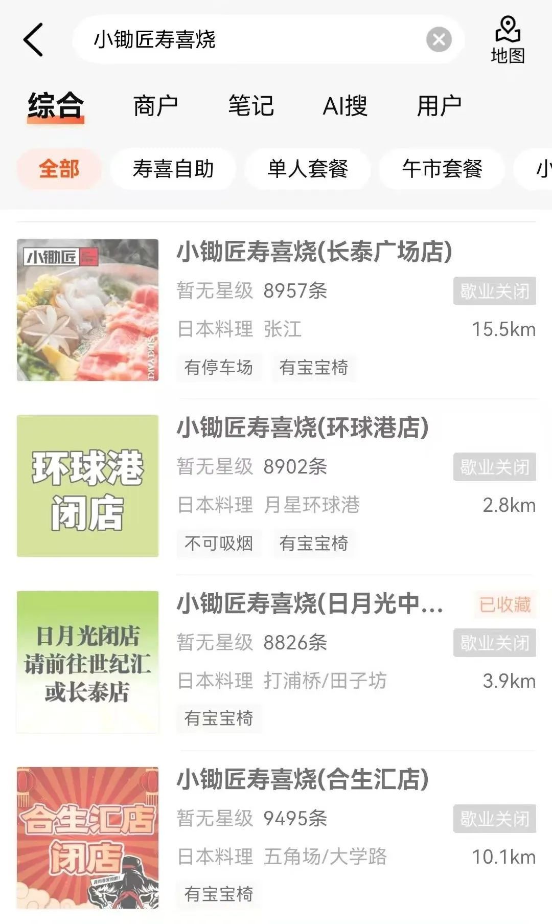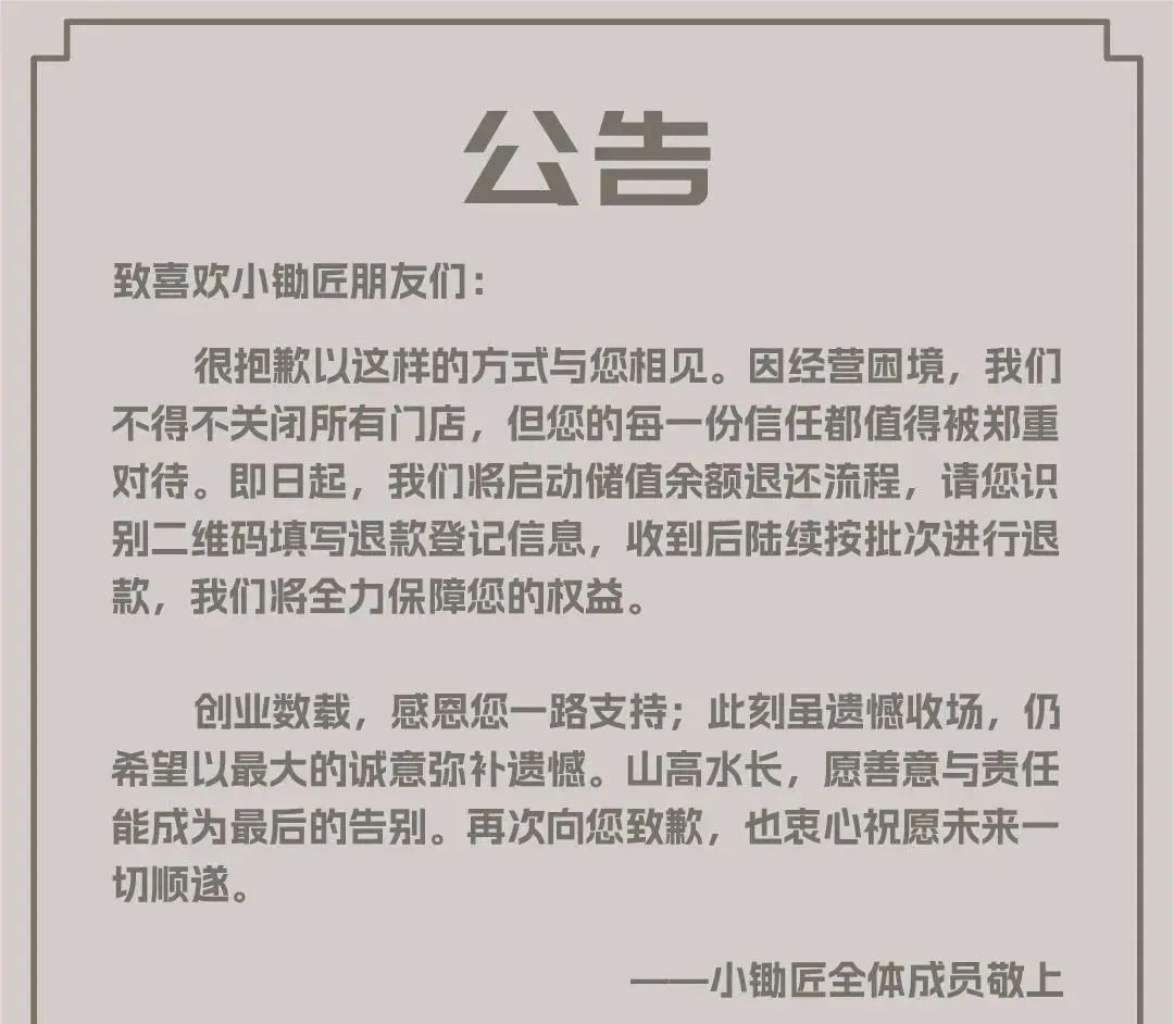 网友分享的信息显示,2024年初开始,小锄匠陆续关店——