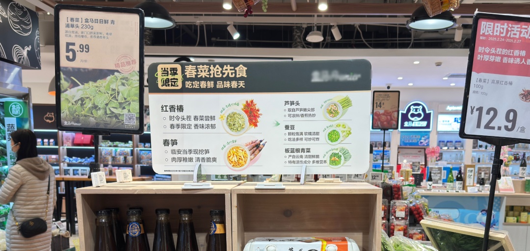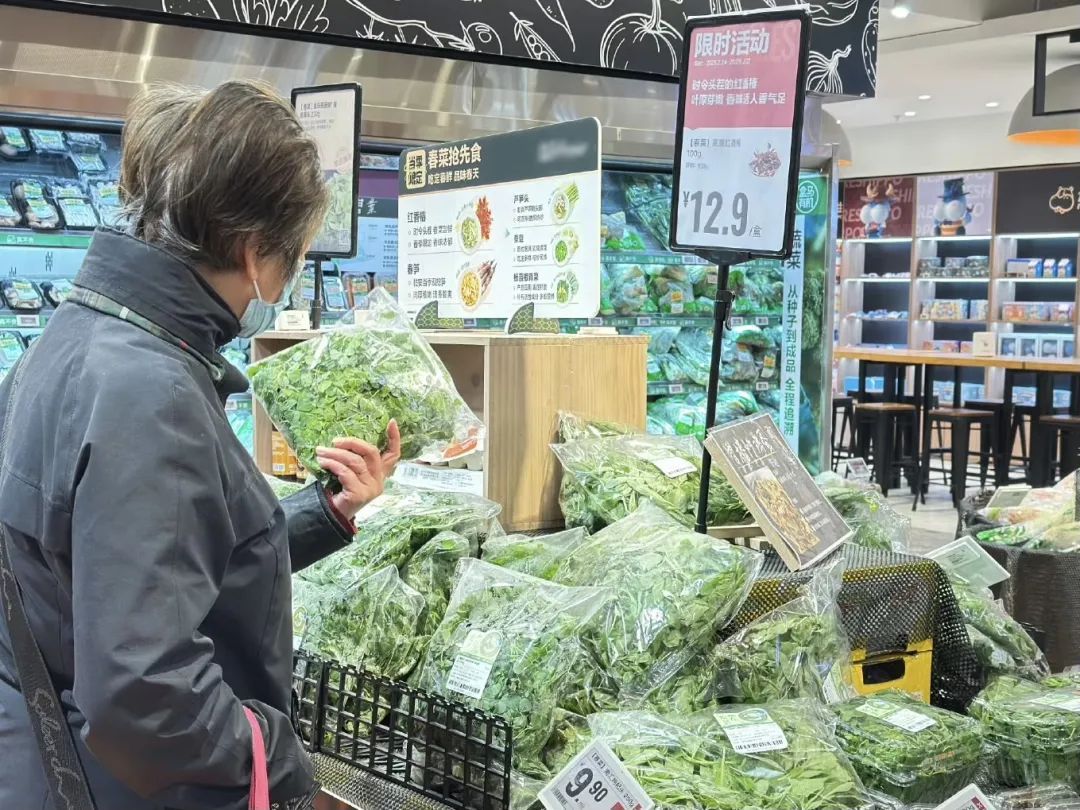 最近,上海人的餐桌迎来了换季时刻,鲜嫩爽口的各式时令春菜成为市民餐桌上的“新宠”。这股春意盎然也蔓延至商超渠道,静安各大盒马门店日前上架近40款时令春菜以及第一波春花,让市民感受到浓浓的春意。