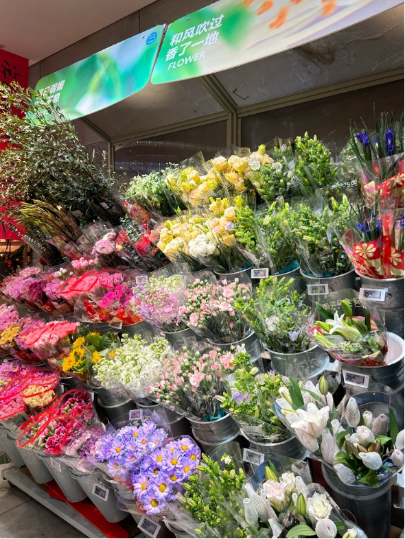 目前,第一波春花已经上市。在静安各大盒马门店,各种时令鲜花早早陈列到位,桃花、樱花、玉兰等鲜切枝含苞待放,释放着春日专属“多巴胺”。