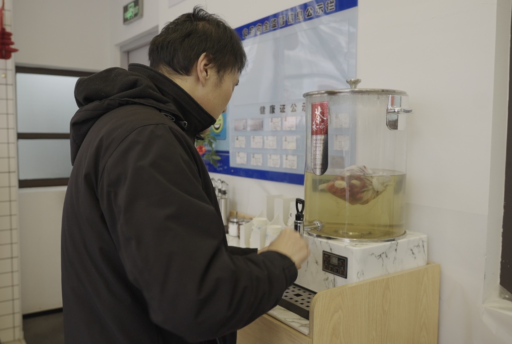 特别针对老年群体和白领,社区食堂推出了手冲咖啡和养生茶饮,让食客又多了新选择。
