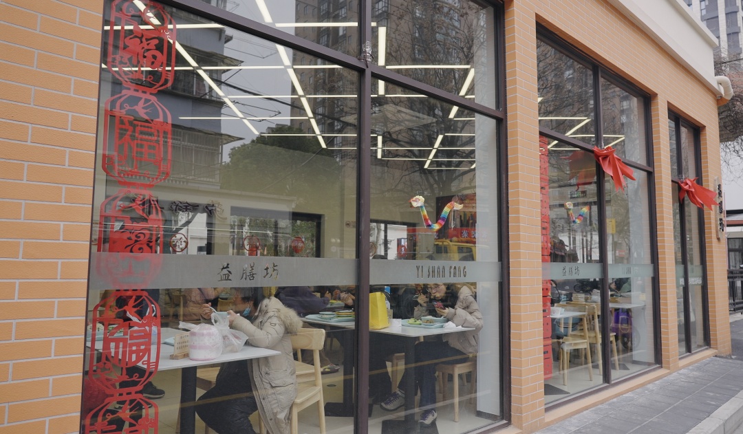 益膳坊社区食堂毗邻上海公益新天地园区,营业面积154.6㎡、就餐位46个,由上海市民政局下属企业——上海社会福利发展有限公司投资建设和运营。