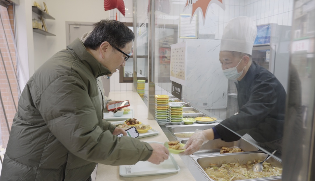 居民查老伯和宋阿姨就住在徽宁路,如今基本上每天中午都到这里来吃午饭,“两荤一素菜一汤基本是30元左右,以前在家还要买汰烧,费时费力,现在有了社区食堂,方便不少,生活幸福感‘爆棚’。”说起家门口的这家社区食堂,前来就餐的很多居民都纷纷点赞。