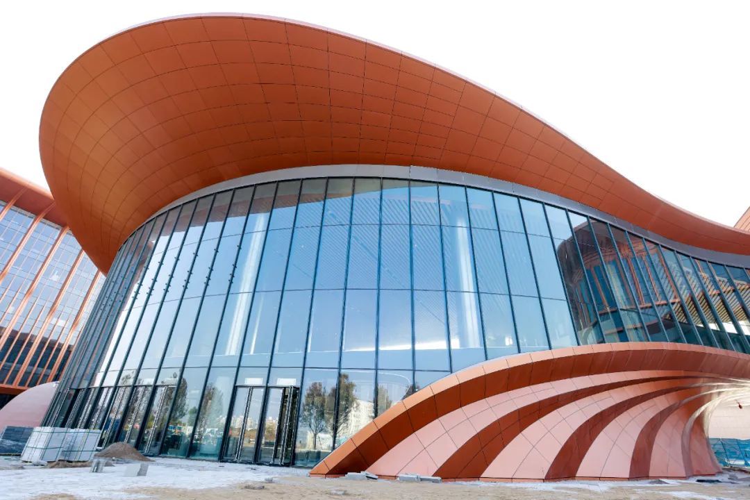 据悉,北京新国展以“紫金丝带”为设计理念,外立面采用流线型褶皱幕墙,紫金色幕墙板通过发散式布局与大型凹窗设计,在宏大尺度中展现灵动质感。越是精妙的设计就意味着更高的施工难度,雅泰相关负责人告诉记者,要想完成这一丝带般的“灵动感”,在加工环节需要攻克多重技术难点,“每件板上下、左右角度都有区别变化,左右呈发散式布局安装,上下角度变化2.5度。尺寸偏差不超±1毫米,角度偏差不超过±0.5度”。为确保装配后整体弧度连贯顺畅,每块板均通过专用模标尺测量弧度,并采用超精度数控加工技术,实现“毫米级”细节把控。