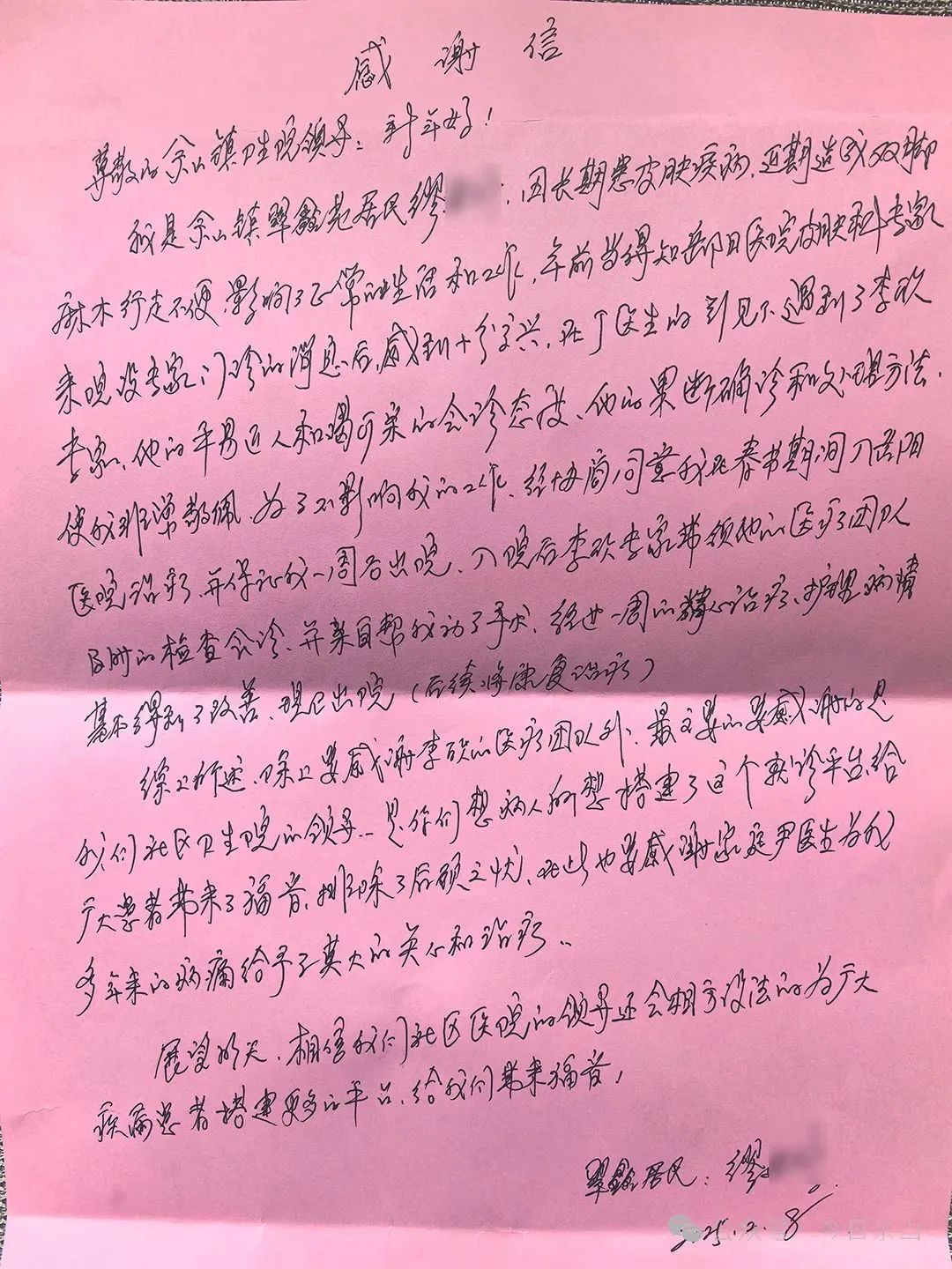 “是你们想病人所想,搭建了这个就诊平台,为广大患者排除了后顾之忧。”近日,佘山镇社区卫生服务中心收到患者缪先生的感谢信。信中,缪先生对岳阳名中医工作室佘山基层工作站的医护人员表达了深刻感激,特别提及家庭医生暖心推荐与精准对接,对中心的就医平台亦是称赞有加。