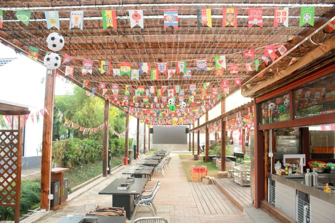 夜幕降临,“日咖夜吧”的经营模式使这里摇身一变成了个动感十足的酒吧。特别是世界杯期间,店外的烧烤区成了看球赛直播的绝佳地点。伴着悠悠的音乐,出门可达的儿童乐园,周边配套的土布工坊、茶一茶室、宠物乐园等,让消食活动变成了旅途的意外彩蛋。