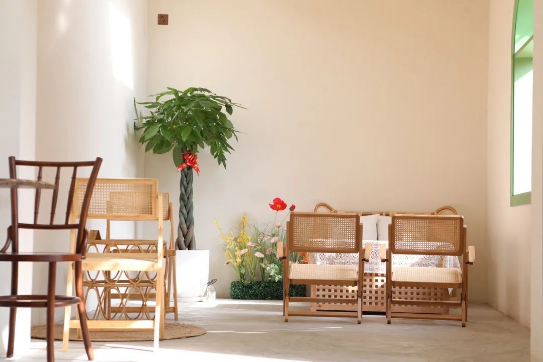 精美蛋糕与现磨咖啡的完美组合,使得下午茶的时光都不自觉放缓。眼神聚焦在小院各种别致的角落和陈设上,聆听着稻浪声作为天然的背景音,放空发呆也成了一种高级美学体验。