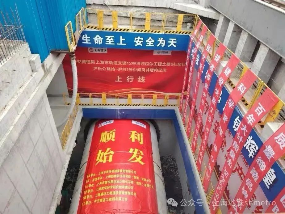此外,12号线西延伸3标沪松公路站-沪科1#风井区间上行线盾构已于2月23日顺利始发。