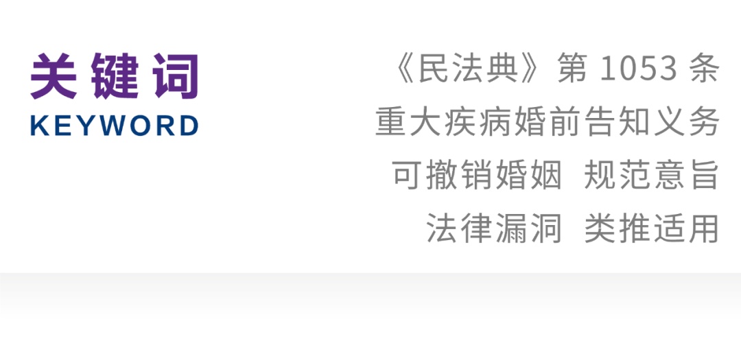 《民法典》第1053条有关“重大疾病对婚姻效力的影响”的调控模式,不同于原《婚姻法》第10条的规定。它通过嵌入“不如实告知”的构成要件,使其规范意旨发生了从强力规制到柔性自治的面向自由意志的重大转变。目前,该规范意旨的转变对本条适用所产生的影响并未被充分注意到,以至于出现法律漏洞而有损法条目的的圆满实现。若认为该条仅意欲规范重大疾病之婚前隐瞒情形,则难谓此结果系立法者有意做出的充分考量,因而本条存在无意的法律漏洞。对此漏洞有填补的必要。对该条漏洞的填补路径,鉴于婚姻家庭法的特殊性,不应直接适用或参照适用有关欺诈型可撤销法律行为的一般条款(《民法典》第148条)。对于其他可获得与“未如实告知重大疾病而致影响相对方有关结婚的自由意志”同等法评价的事项,例如,性取向、婚史、孕育史、宗教信仰、犯罪记录、基因信息等有关婚姻本质、对结婚意思有决定意义的事项,应受第1053条立法目的规整,因此可类推适用之,以求法条目的的圆满实现并妥当应对现实需求。