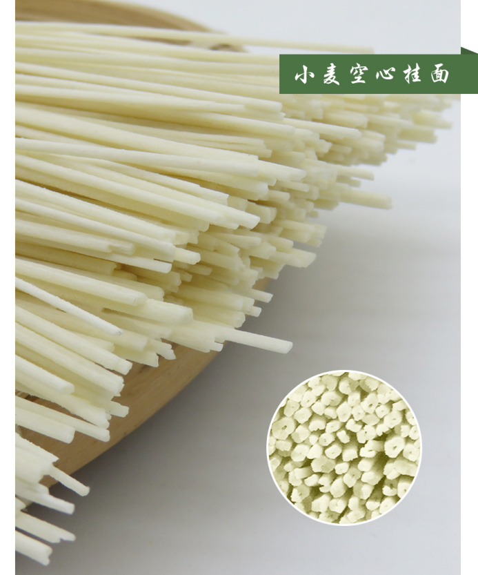 产品严选黄土高原优质小麦,采用传统工艺,经过和面、阴面、切面、搓条、盘条、上杆、拉丝、晾晒等十余道工序纯手工精制而成,色泽莹润、柔韧细腻、纤细均匀。独特的空心结构,使面条更易入味、口感更加筋道爽滑,久煮不烂,汤清面爽。