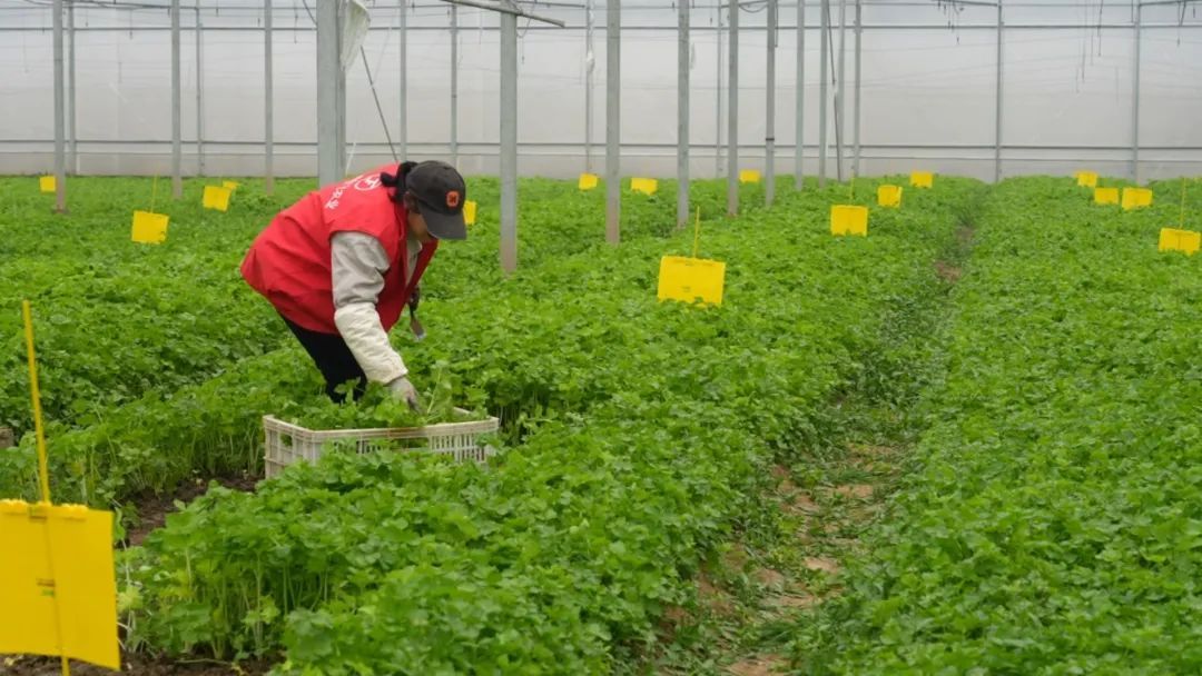 2月27日上午,记者走进位于嘉定江桥镇的上海佳飞蔬菜专业合作社黄心芹大棚,一股浓郁的芹菜清香扑鼻而来,工作人员正忙碌地进行采收作业。