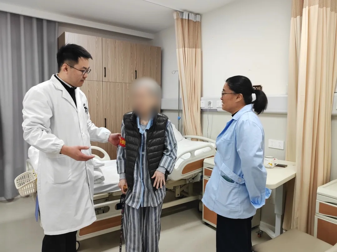近日上午时分,光华医院病房内,95岁的王奶奶正在家人和医务人员的陪伴下慢慢地踱着步,老人和医生聊着天,脸上洋溢着笑容。这天,距离她髋关节置换术刚刚过去一周。