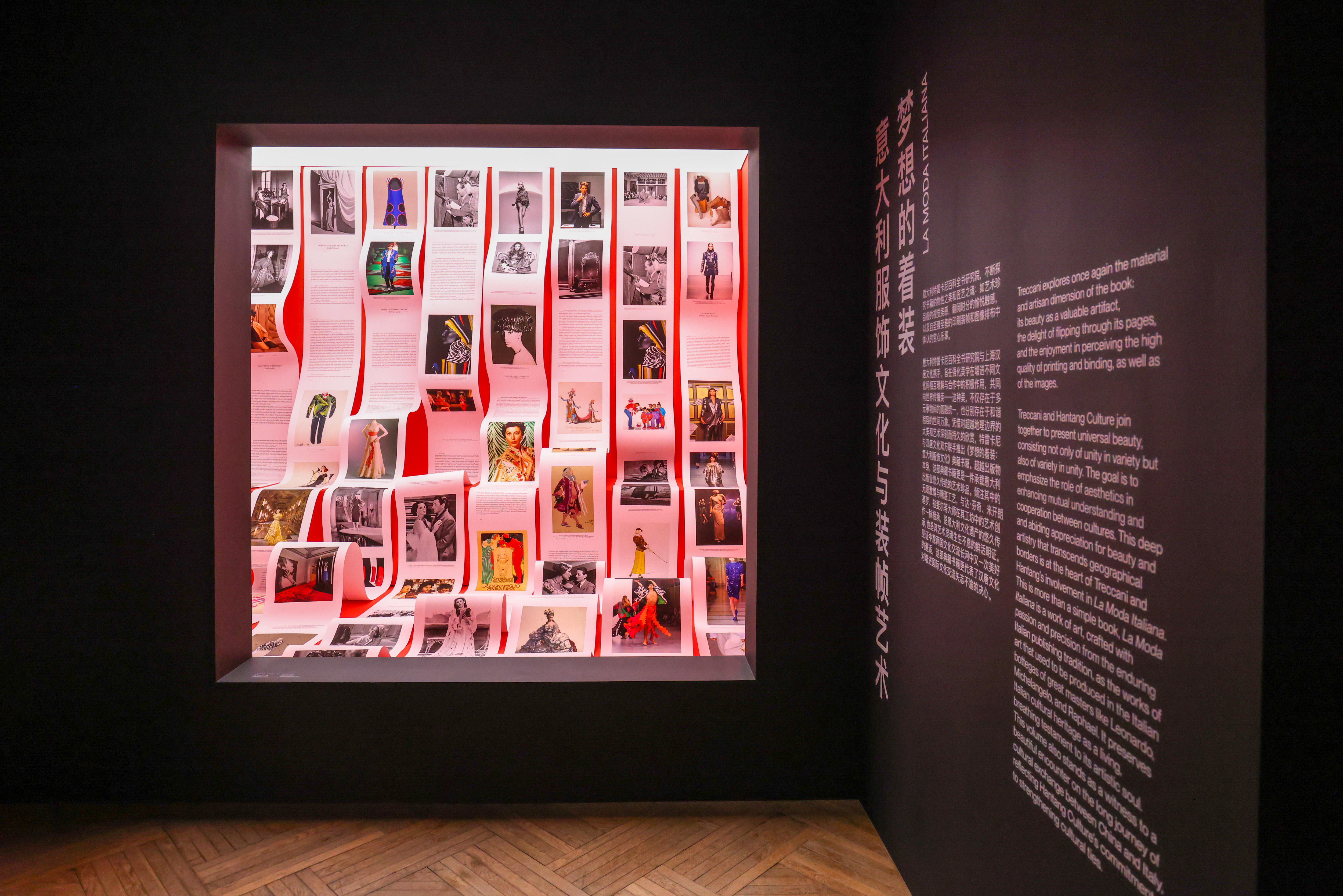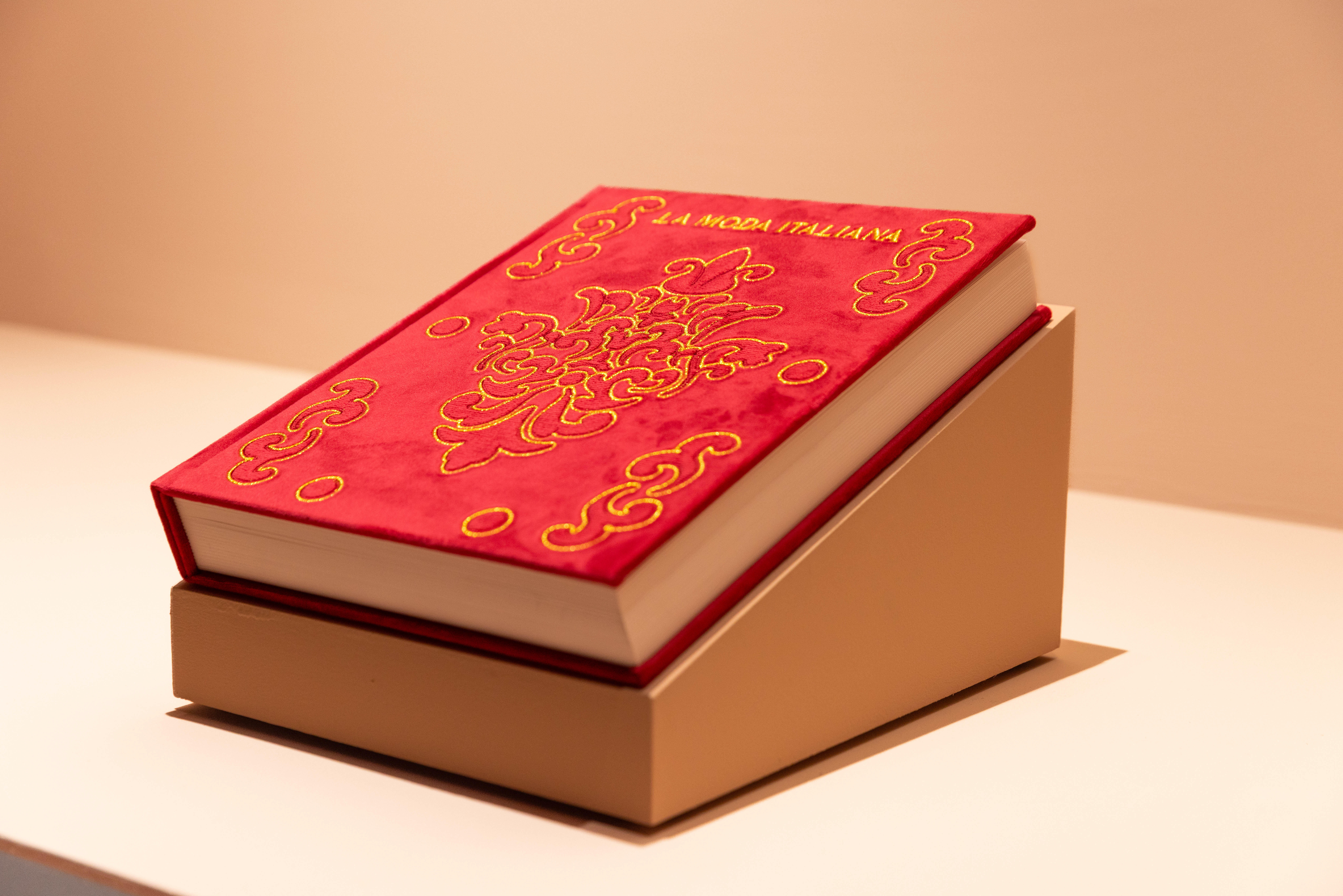 展览的核心亮点之一是由上海汉唐文化委任特雷卡尼编撰、联合推出的《梦想的着装:意大利服饰文化》(LA MODA ITALIANA)典藏书籍的全球首发。这一书籍以服饰文化为切入点,深入探讨意大利绘画、歌剧、戏剧、音乐、电影,以及灿烂悠久的文化遗产及手工艺传统等不同领域互相交织的对“美”的阐释和表达,溯源意大利在全球时尚领域卓越地位的建立与发展。该典藏书籍限量发行150本,以红色天鹅绒制作封面封底,饰以由意大利艺匠手工金线刺绣的文艺复兴时期纹样,内页沿袭意大利出版业传统的印刷和装帧技艺,力求以对精湛技艺的传承和表达,书写中意两国文化交流长河中又一次的美丽邂逅。