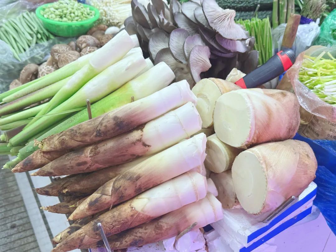 在徐盈菜场,春笋无疑是当之无愧的主角。摊主王大姐动作麻利地剥开笋衣,露出如羊脂玉般温润的笋肉,笑着介绍道:“今年春笋价格和往年相差不大,一斤 8 块钱,吃法可多啦,炖汤、油焖或者炒酱肉,那叫一个鲜!”说着,她拎起一根足有半臂长的雷笋,满脸自信地推荐,“看这根,做腌笃鲜最合适不过了,和咸肉一起炖,等汤色变得奶白,再撒上一把青蒜,那鲜味,能把人香迷糊!”隔壁摊位上,成捆的马兰头整齐码放,紫红的嫩芽透着一股山野的清新。正在挑拣的孙阿姨热情地分享着经验:“将马兰头焯水切碎,拌上香干再淋点麻油,配一碗菜粥,这就是老底子上海人记忆里的春天味道。”