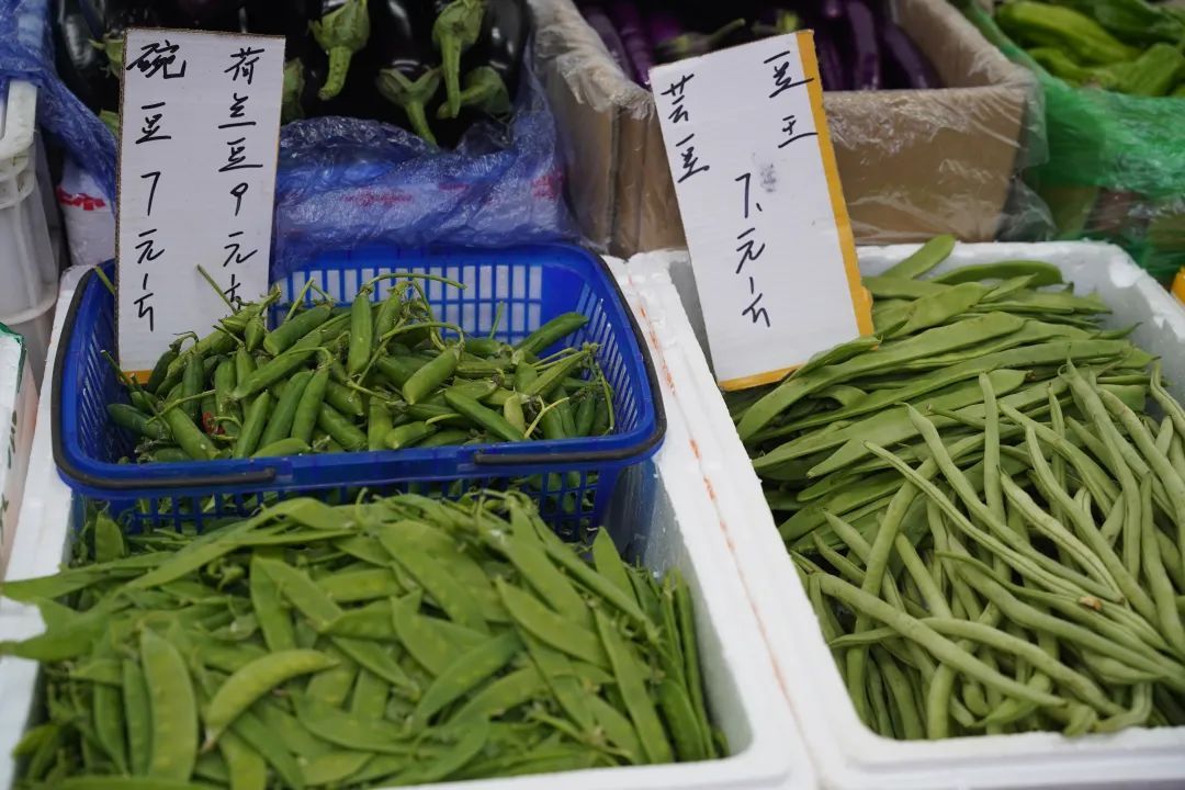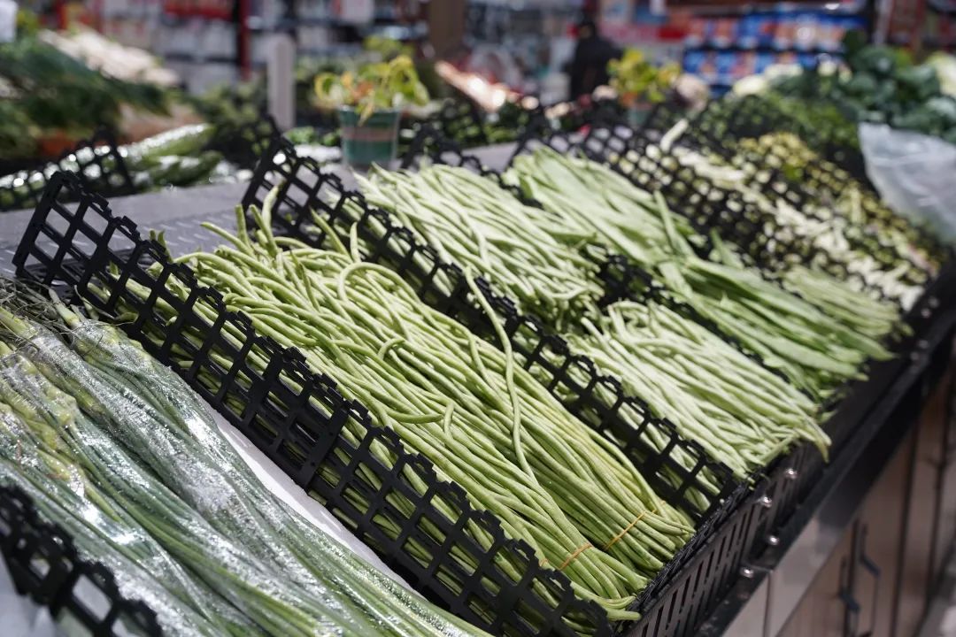 在鹤森生活广场超市的春菜专区,仿佛踏入了一片绿色的海洋,蚕豆、豌豆、豆苗、草头、枸杞头等春季时令蔬菜琳琅满目,翠绿饱满的蚕豆荚格外诱人,轻轻剥开,一颗颗如翡翠般晶莹剔透的蚕豆粒跃然眼前。一位正在挑选蚕豆的阿姨告诉记者,春天就该吃蚕豆,清炒之后又香又糯,家里老人小孩都爱这一口。