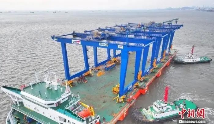2024年12月14日,中企为斯里兰卡建造的第四批4台自动化轨道吊顺利发运,发往科伦坡西港。中新社发 许丛军 摄