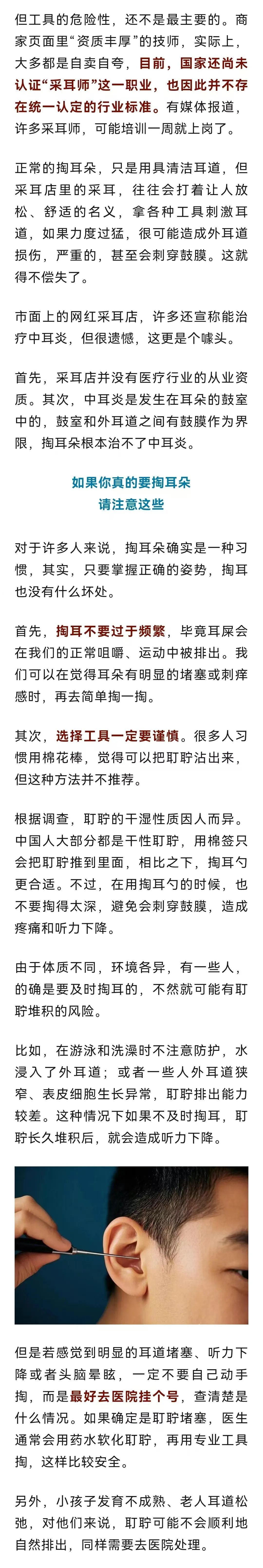 不过,采耳真的像网上说的那样,既能好好清理耳朵,又能放松、保健吗?事实上,它可能远比你想得更危险。