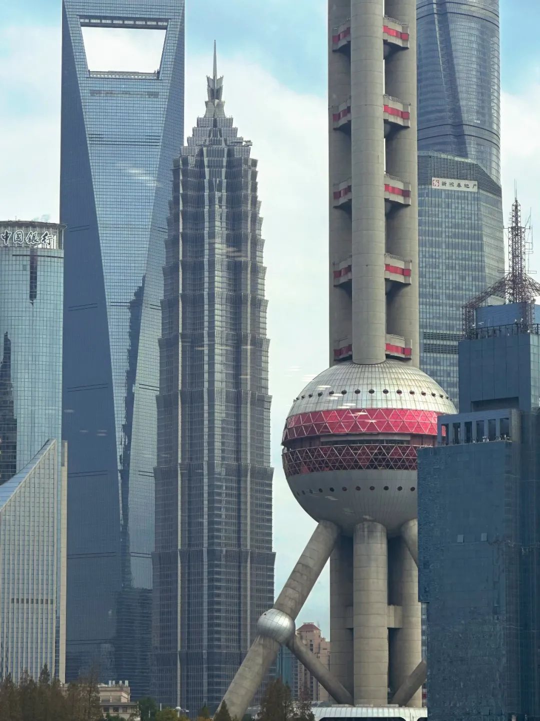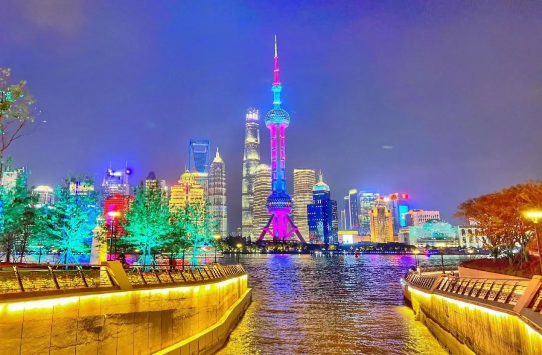 站在世界会客厅沿黄浦江区域的开阔观景平台,西望外滩建筑群鳞次栉比,东眺陆家嘴天际线熠熠生辉,“魔都”两个字此时此刻被具象化。夜幕降临,灯光亮起的那一刻,不要太治愈。
