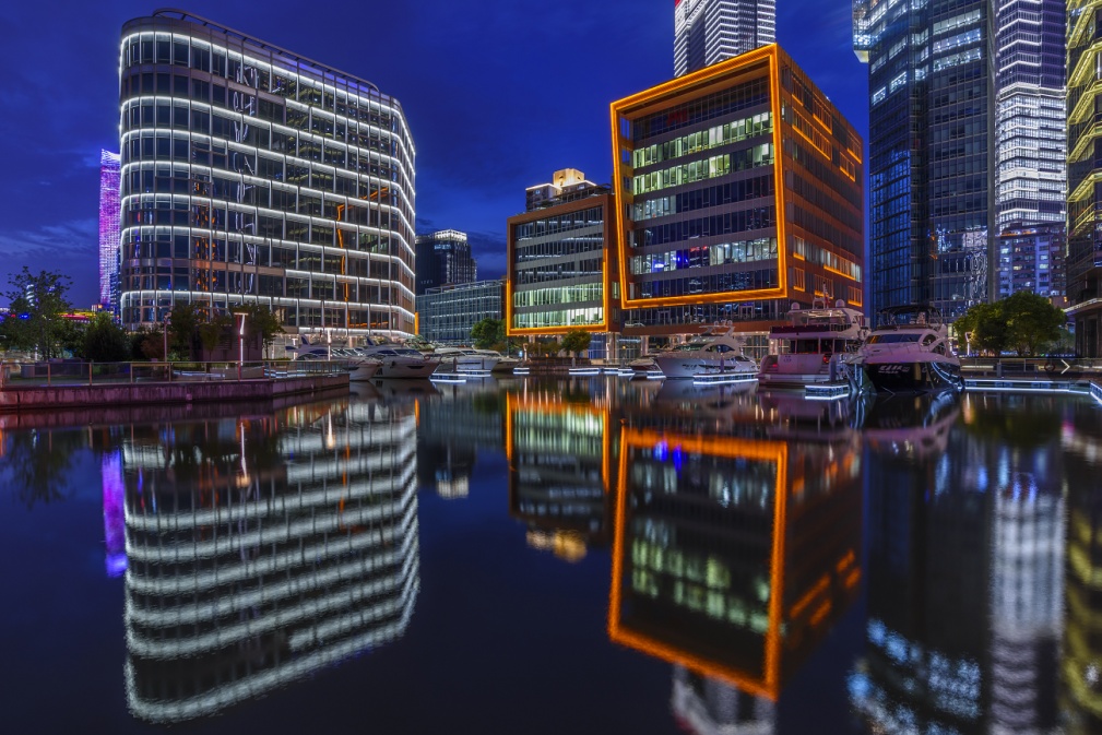 因吹丝“艇”!楼宇化身魔都之框,西港池里泛出光影,凌厉的线条闪烁出金属光泽。水闸开启,游艇缓缓驶入黄浦江,就是难得一见的景观。