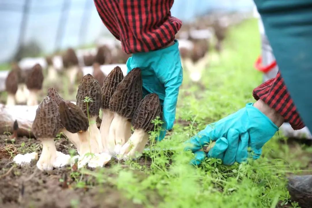 2024年,依托高标准设施农田建设,一座座标准化设施大棚在基地建起,合作社的规模也越来越大,为周边农户起到了重要的示范带动作用。“我们向农户统一提供菌种,指导种植技术,待出菇后,再由合作社进行统一收购并承担后续的包装运输等工作。”杨吉介绍,目前鲜菇的销售渠道包括盒马、京东、美团等,上市期的销售价格比较理想,对于不能及时销售的羊肚菌,合作社也会将其烘干成干菇,另行定价销售。