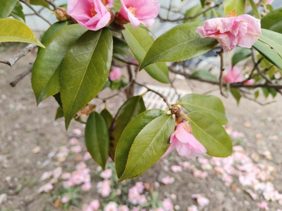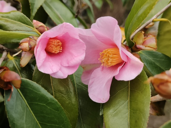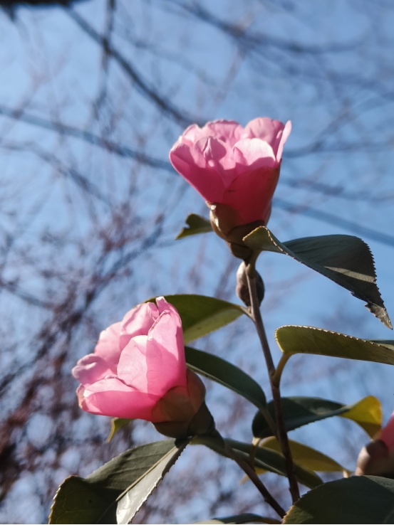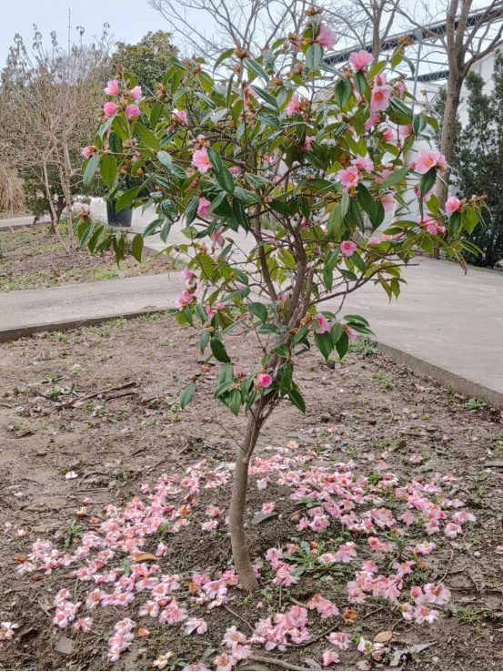 单体红山茶虽美,但极少结实,这也是它名字中“单体”二字的含义——即单体或单倍体,染色体缺失导致高度不孕。好在,单体红山茶不用于产油(茶果可以榨油),它的观赏价值更为突出。相比山茶,它的花期更早,2月即可开花,凌寒盛放;而相比更早开花的茶梅,它枝干苍劲,风韵高雅,不管是一树繁花,还是落英缤纷,都同样精彩。