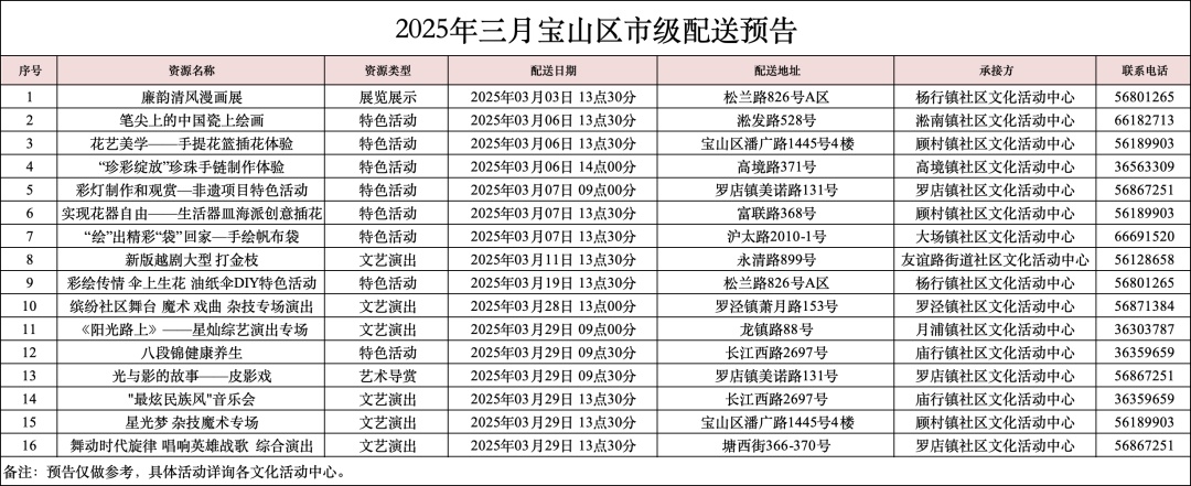“阿拉公益电影院”是由宝山区文化馆打造的沪上首个公共文化配送品牌项目,借助宝山文旅的演出、展览、旅游、培训、导赏、非遗等各类文化活动资源,打造超有特色的文旅商体展融合体验新场景。从2025年3月起,宝山区文化馆不定期会放映一场公益电影呦,更会紧扣各类节庆、假期精心策划一系列有乐有趣有爱的放映活动。