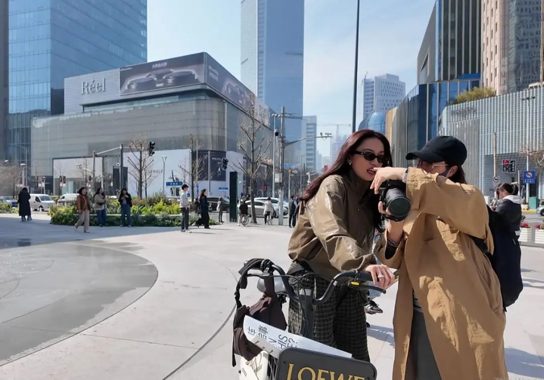 11点不到,静安嘉里中心前的取车点已经排起了长队。好多人显然是有备而来,精心打扮后在好看的背景前凹造型,骑车3分钟,拍照2小时,务必要拍出称霸朋友圈的照片。
