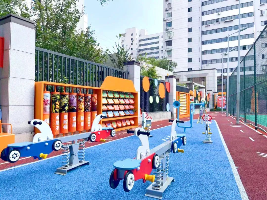 “童享长风”儿童科普角的诞生源于对“一老一小”需求的发掘。“我们中心许多爷叔阿姨带着孙辈活动,却很少在户外停留。”工作人员介绍。一方面,枣阳党群服务中心内嵌长风社区学校,“祖孙档”众多,“遛娃”需求旺盛;另一方面以篮球场为主的户外活动场地服务人群局限于青少年以上人群,针对“20后”的户外场地却少之又少。