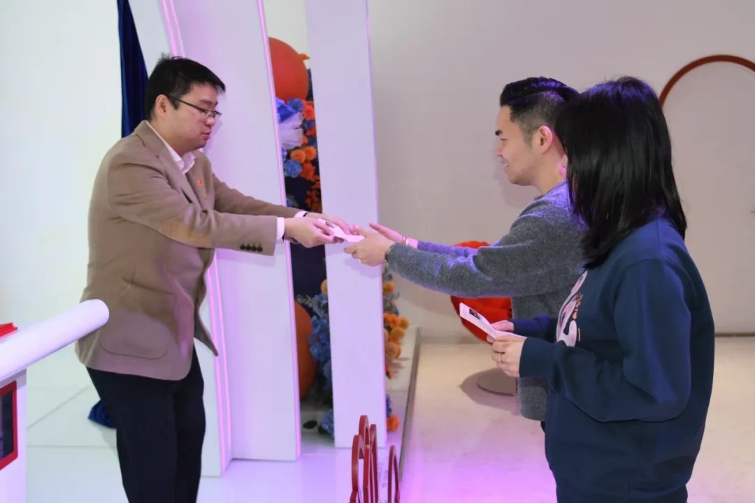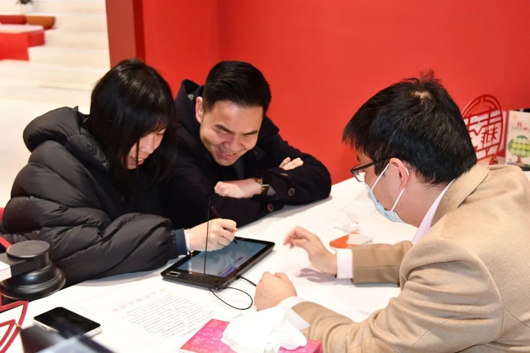 近日,杨浦居民郑女士与美国籍未婚夫来到杨浦区婚姻登记中心,短短半小时内,顺利领到了编号为“900001”的结婚证书,成为杨浦自今年启动涉外婚姻登记试点工作以来,首对在杨浦喜结连理的涉外婚姻登记新人。 “我家就住在附近,之前我们以为只能去市级婚姻登记机关领证,已经预约好准备去了,然后得知家门口就能领证,抱着试一试的心态过来看看,没想到真的就办好了!”郑女士和爱人开心地说。 在特设的“涉外婚姻登记受理专窗”办理好手续后,杨浦区婚姻登记中心工作人员为新人举行了喜庆简约的结婚颁证仪式,并郑重颁发结婚证书。 现场,工作人员还引导新人参与“寻爱之旅”“缱绻情话”等杨浦特色婚姻文化展项互动,生成恋爱回忆录,投递纪念明信片,并留下甜蜜合影。 目前,杨浦区婚姻登记中心已受理了包括德国、加拿大、日本、中国香港等多对涉外婚姻登记预约。今后,中心将进一步畅通涉外登记预约渠道,提供材料在线预审服务,高效响应婚姻当事人的多元化需求,努力让婚姻当事人感受到杨浦的婚姻登记服务品质和温度。