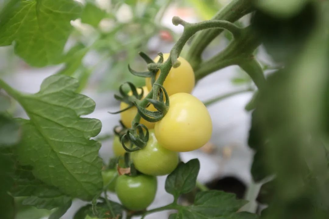 春意渐浓,嘉定外冈幸运草莓园的蔬菜大棚里暖意融融,一排排番茄藤蔓排列整齐,一簇簇乳白色的小番茄隐在绿叶间,呈现出白玉般的温润色泽。