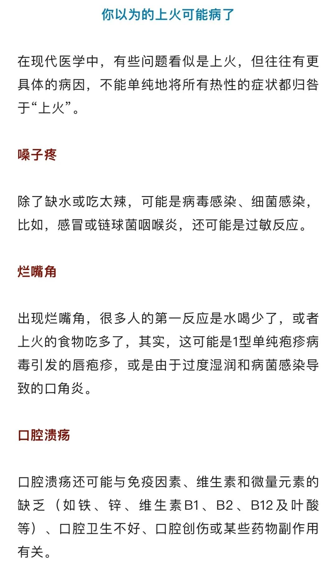 湖南中医药大学第一附属医院脾胃病科主治医师徐寅介绍,中医认为,“上火”属于中医的热证范畴,“火热之邪”侵袭人体,会造成全身或局部出现一系列“热证”,