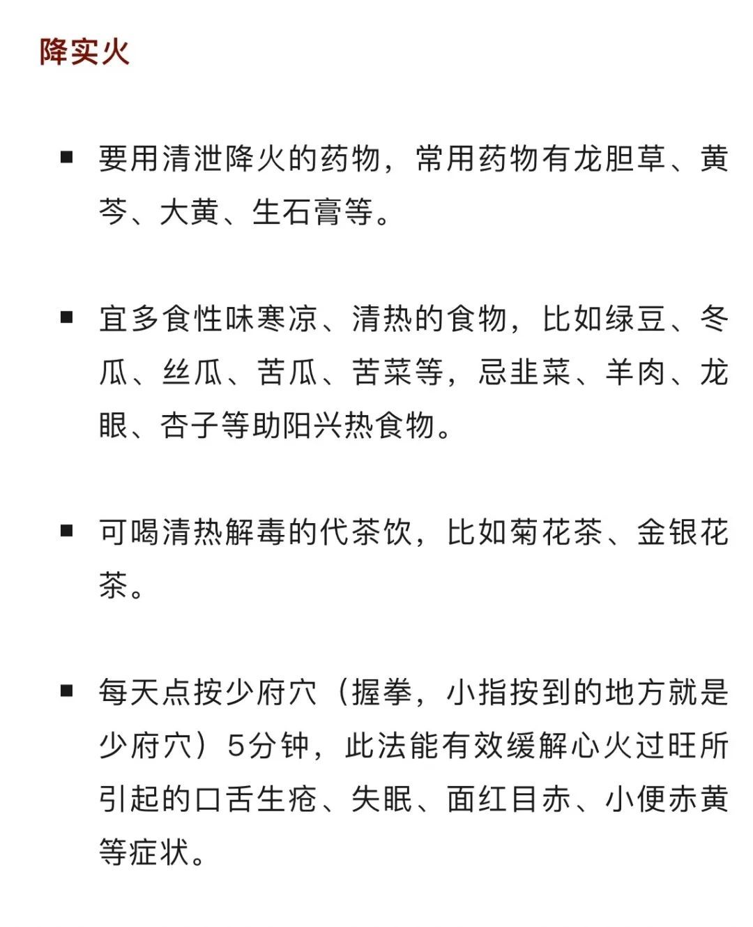 总体来说,实火多由外感、饮食过辛、自身体质因素导致的,多有高热、面红耳赤、心烦易躁、喜冷饮、唇焦(嘴唇干裂)等症状。
