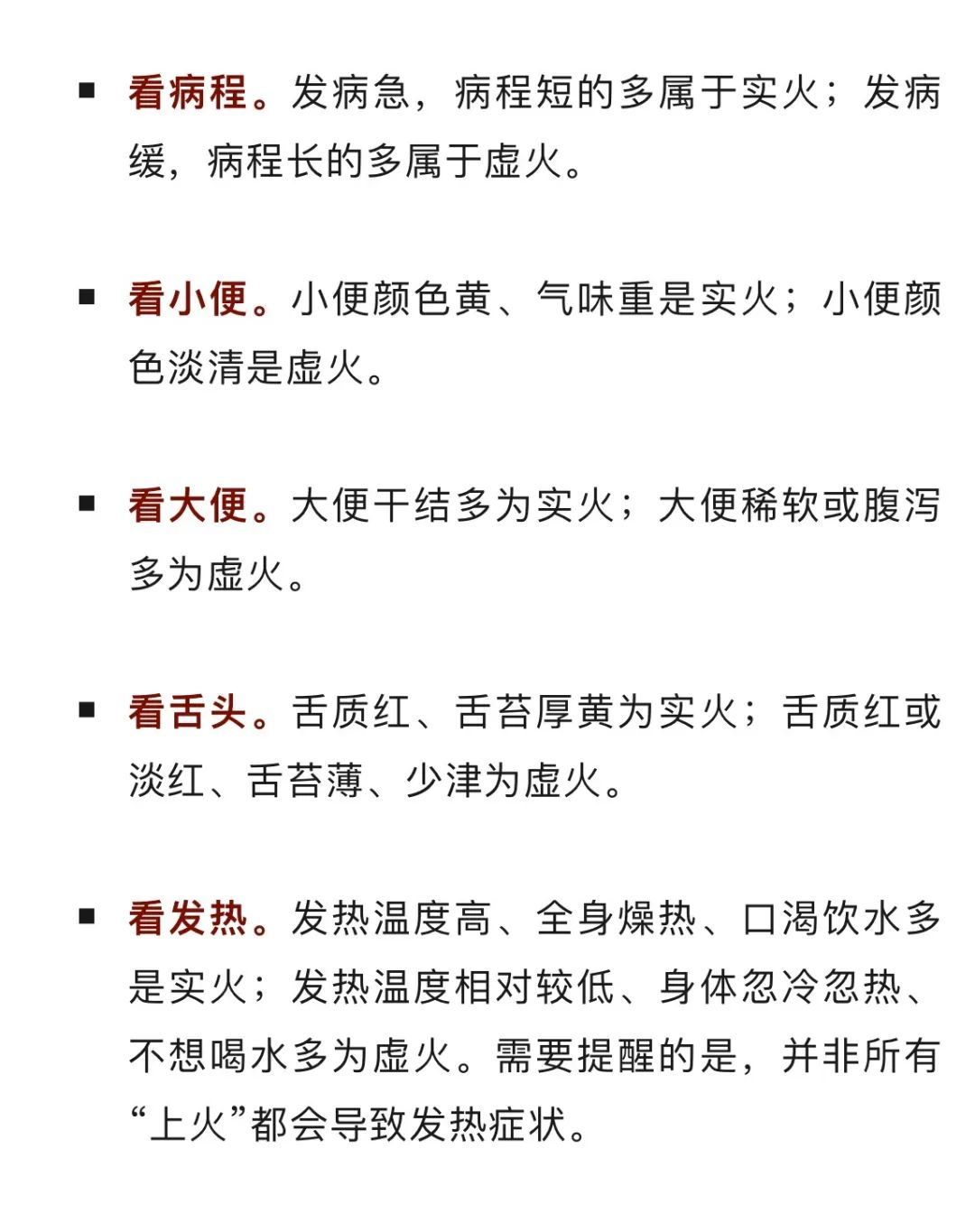 区分自己的“火”是实是虚,可从以下5个方面来分辨。