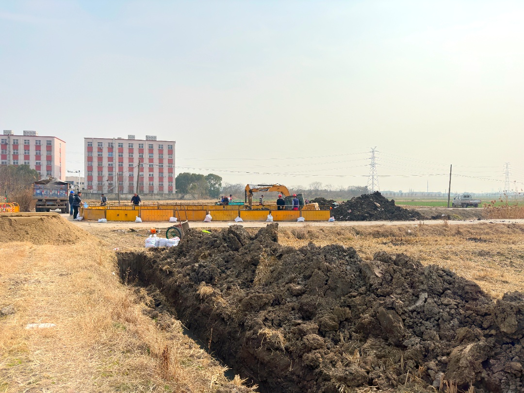 眼下正值春耕时节,外冈镇抢抓时机,全力推进高标准农田建设。小嘉在施工现场看到,数台挖掘机正在加紧进行破土、沟渠开挖和管道铺设等工作,现场一派繁忙景象。