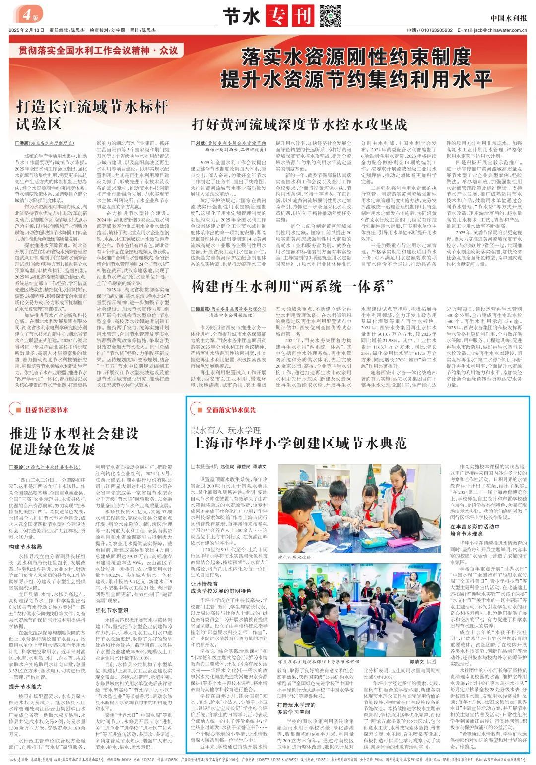 近日,《中国水利报》4版关注闵行《上海市华坪小学创建区域节水典范》,揭秘这所节水型学校如何通过30年持续探索,将节水行动转化为鲜活的教育基因,培育出一代代心系碧水的闵行“水孩子”。具体内容详见↓
