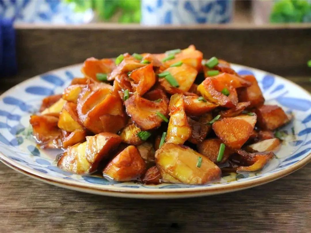 原料:春笋500克,酱油、糖适量,姜汁少许。