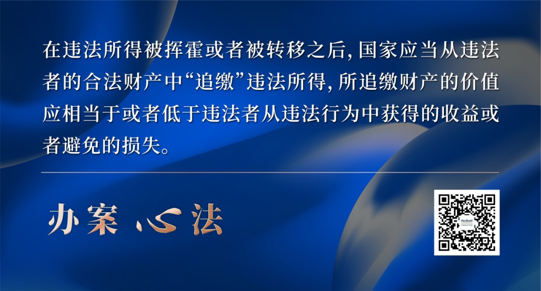 笔者认为,追缴和没收的范围不应当仅限于违法财产,在前提条件发生变化的情况下,即依法应当追缴、没收的涉案财产无法找到、灭失的,就逻辑而言,显然已无法追缴到原物。但是,犯罪分子的违法所得不能因为挥霍或者自然灭失而免除被告人退缴的义务,在违法所得被挥霍或者被转移之后,国家应当从违法者的合法财产中“追缴”违法所得,所追缴财产的价值应相当于或者低于违法者从违法行为中获得的收益或者避免的损失。
