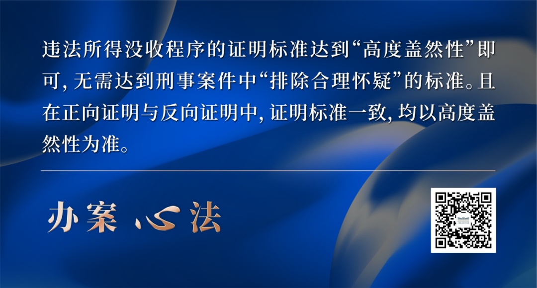 《刑诉法解释》第六百二十一条及《没收规定》第十七条明确,申请没收的财产具有高度可能属于违法所得及其他涉案财产的,应当认定为“申请没收的财产属于违法所得及其他涉案财产”。《反有组织犯罪法》第四十五条规定,被告人实施黑社会性质组织犯罪的定罪量刑事实已经查清,有证据证明其在犯罪期间获得的财产高度可能属于黑社会性质组织犯罪的违法所得及其孳息、收益,被告人不能说明财产合法来源的,应当依法予以追缴、没收。法条中出现的“高度可能”与刑事案件中的“排除合理怀疑”的证明标准明显不同,不同于普通刑事诉讼中证明被告人犯罪的证明标准需达到“排除合理怀疑”的程度,违法所得没收程序的证明标准采纳了“高度盖然性”标准。