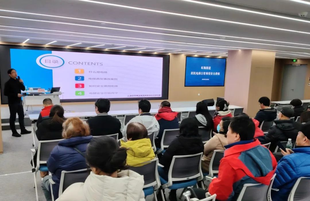 为提高居民对电梯出行安全的认知,增强物业及居民对电梯故障的应急处理能力,近日,徐汇区虹梅街道平安办组织开展了“居民电梯乘用安全专题讲座”活动,吸引了各居民区居委干部及居民代表踊跃参与。