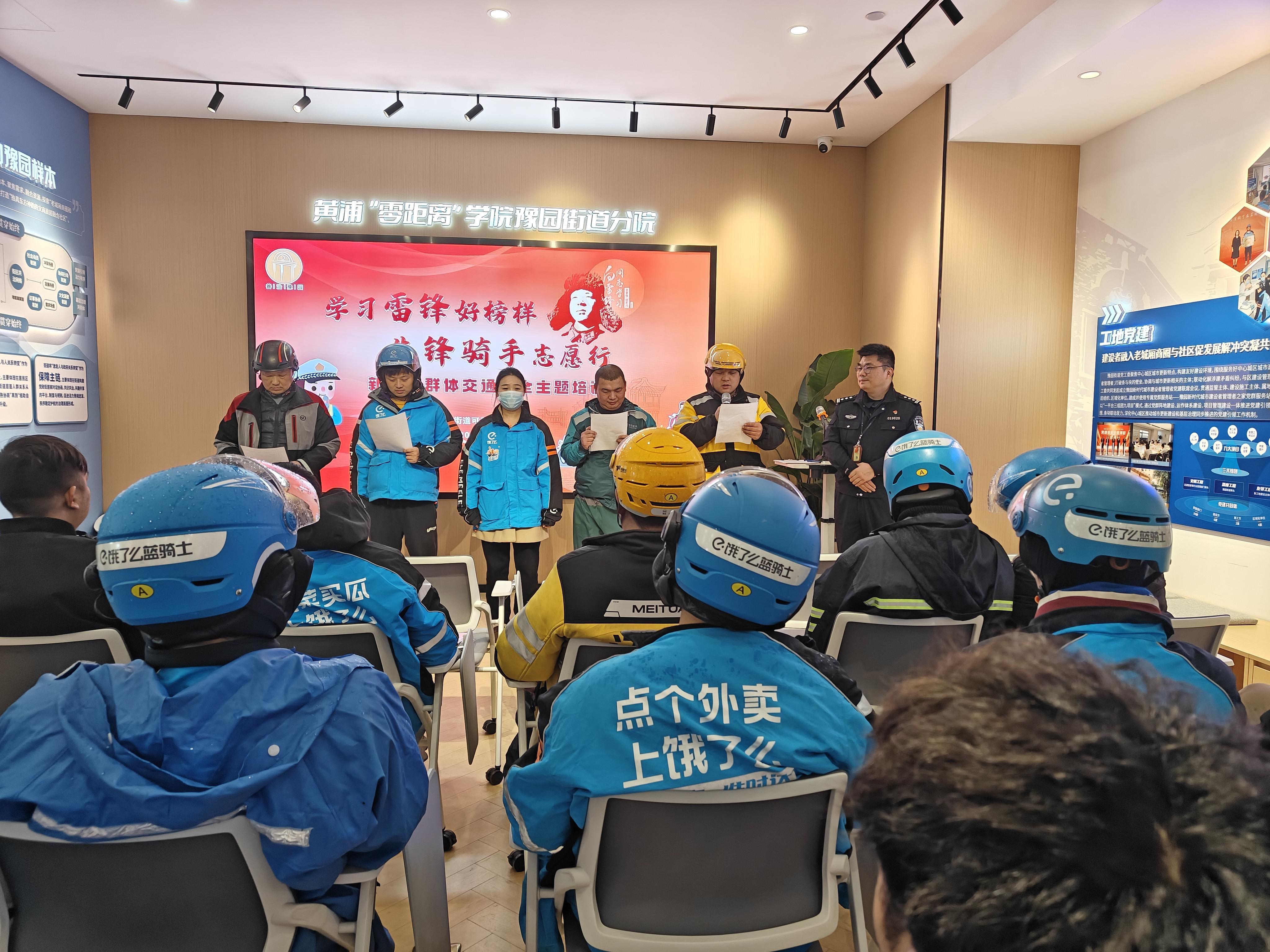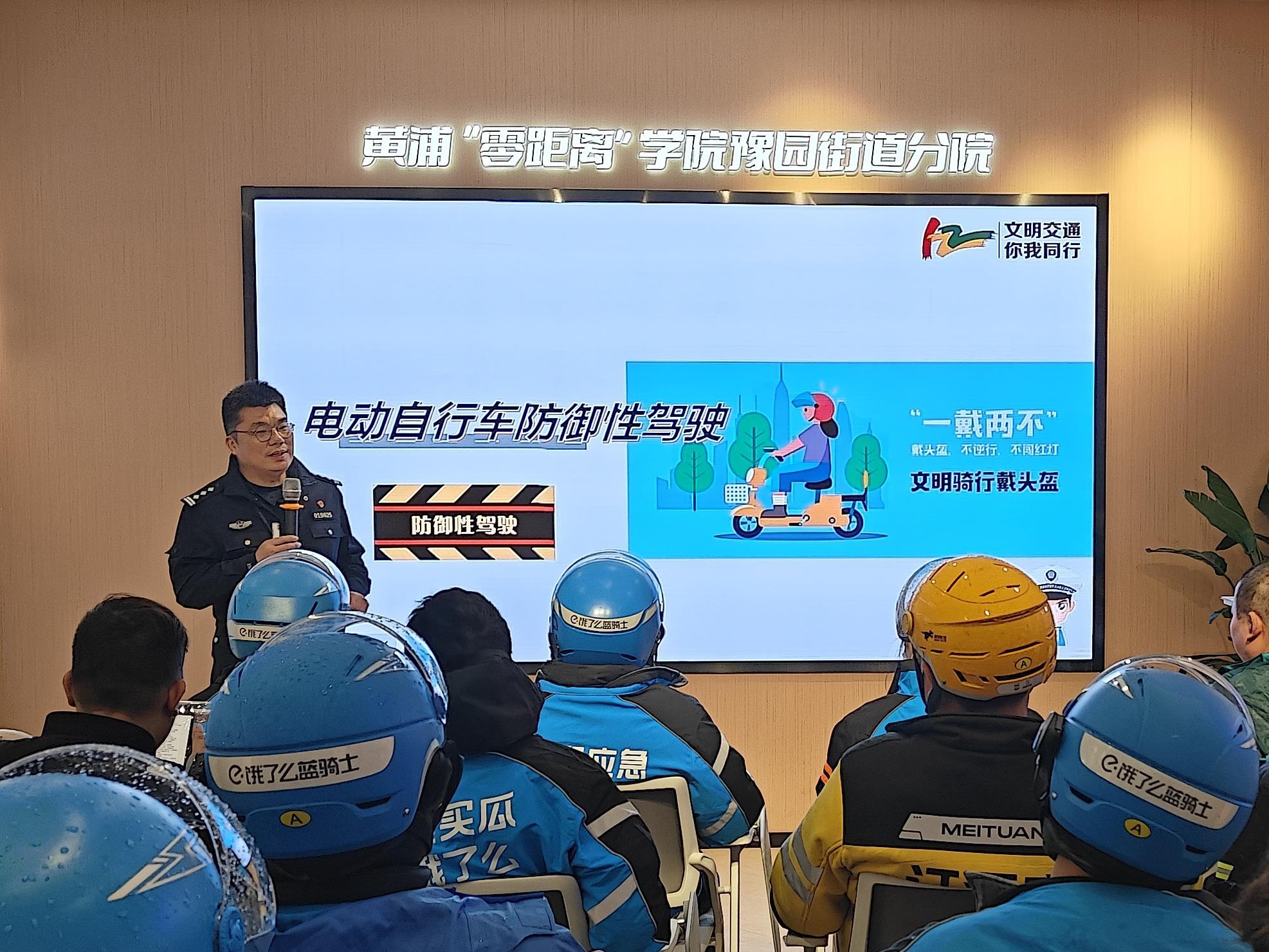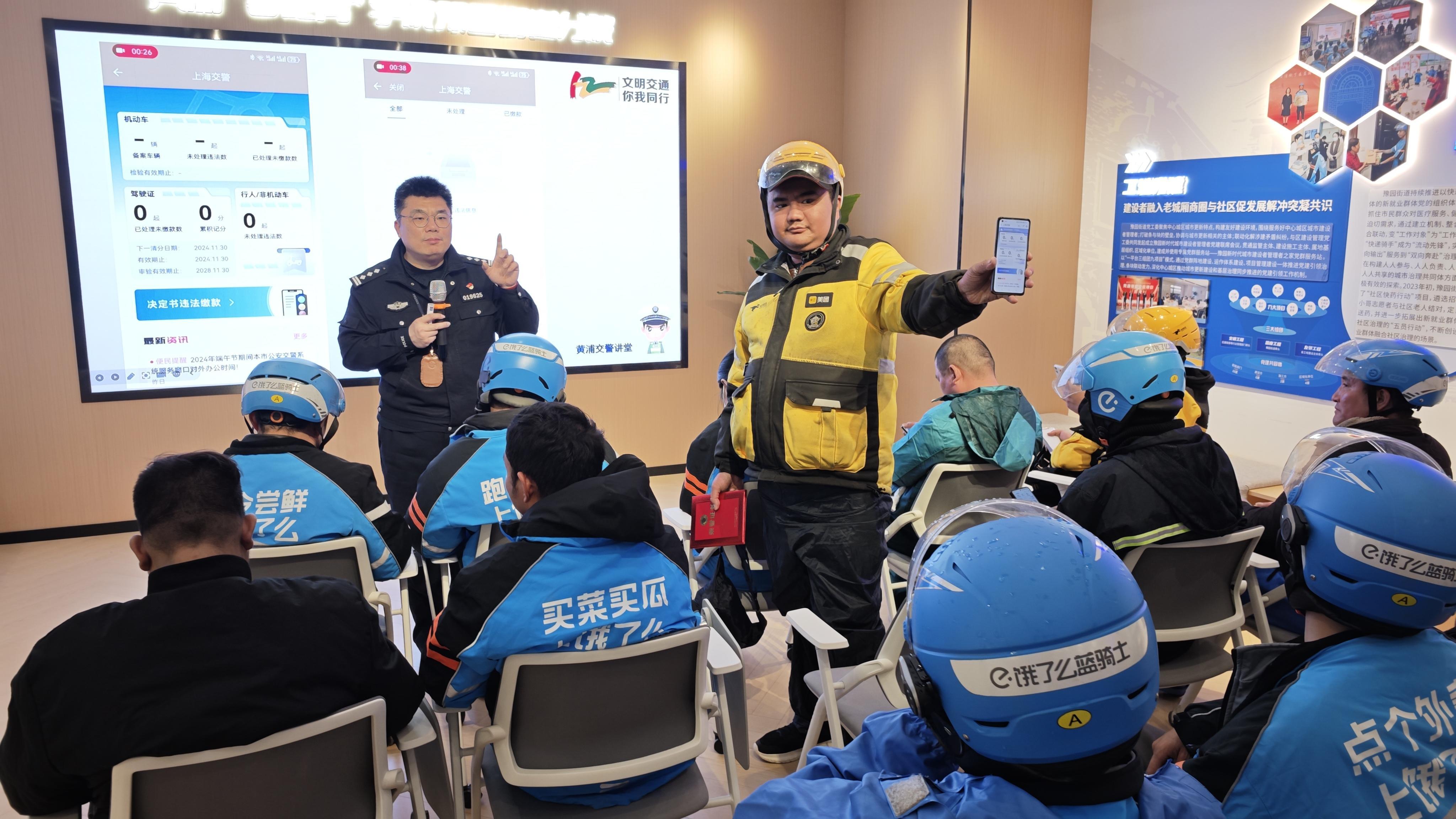 春日的申城街头,一抹抹身影穿梭如风,他们是城市运转的“毛细血管”,是烟火气的守护者,更是文明出行的践行者。为进一步提升新就业群体交通安全意识,规范配送服务行业交通行为,2025年3月3日,豫园街道携手黄浦交警支队在可爱里党群服务站举办“学习雷锋好榜样 文明实践我行动”新就业群体交通安全主题培训,邀请辖区内饿了么、美团、顺丰、邮政等平台骑手们在配送空闲时间参与。通过量身定制交通安全必修课,助力构建文明出行新风尚。