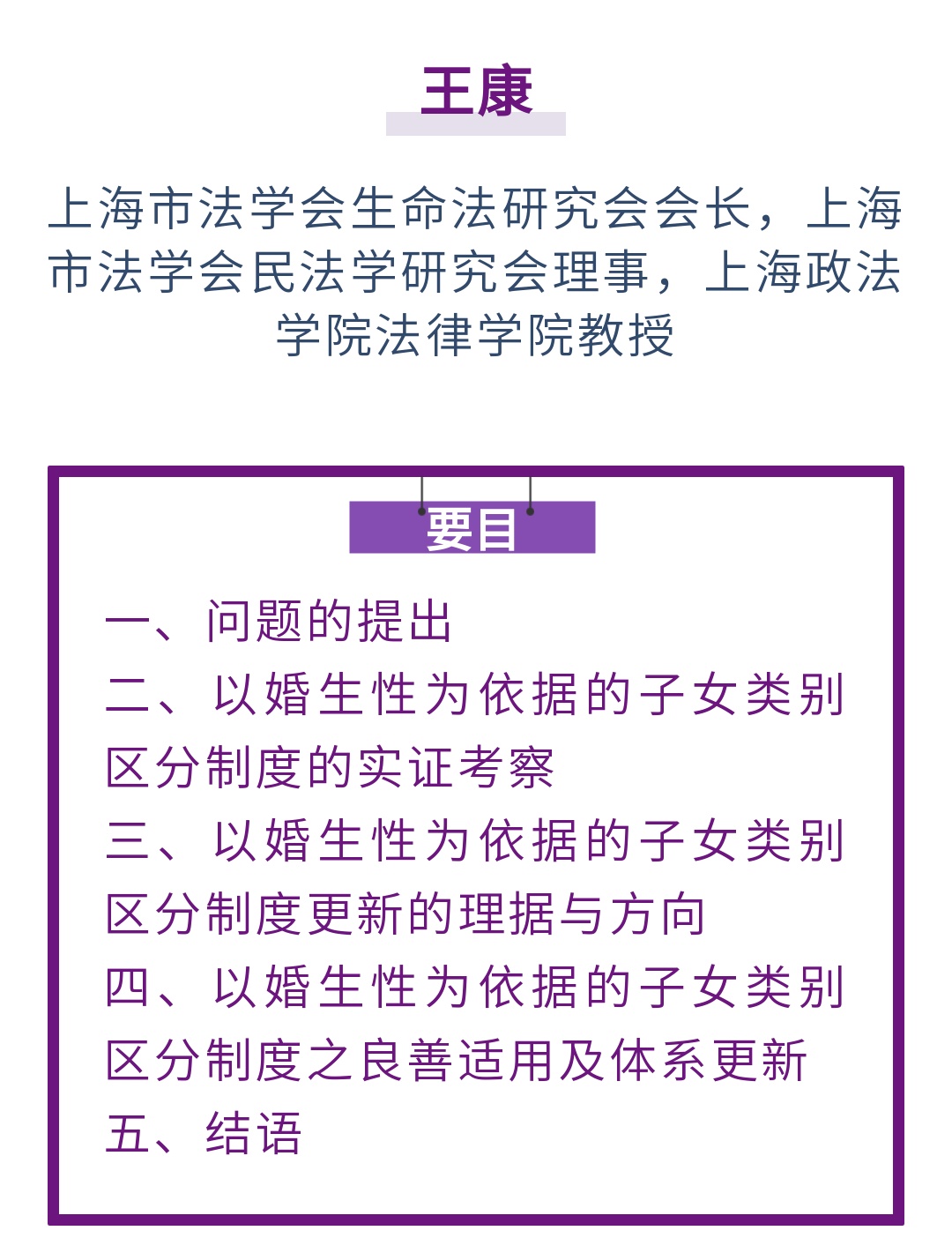 法学∣王康:论婚生与非婚生子女类别区分制度之扬弃——基于功能变迁、适用效果及人权理念
