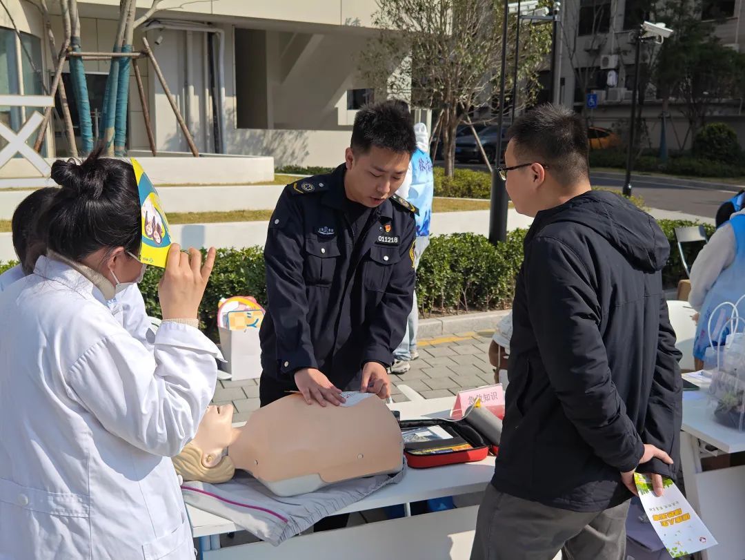 上午9点,市集刚开张便吸引了众多居民驻足。在租房咨询摊位前,徐房商用物业党支部的志愿者们耐心细致地解读保障性住房政策细则,不少青年一边认真聆听,一边不时提出自己关心的问题,志愿者们都一一给予详细解答,助力青年们在城市中实现安居梦想。禁毒宣传摊位前摆放着仿真毒品模型,禁毒志愿者通过生动的互动问答,向居民们普及识毒拒毒知识。不远处,市医疗急救中心的青年团队通过心肺复苏模拟教学,让居民亲身体验“黄金四分钟”急救操作。