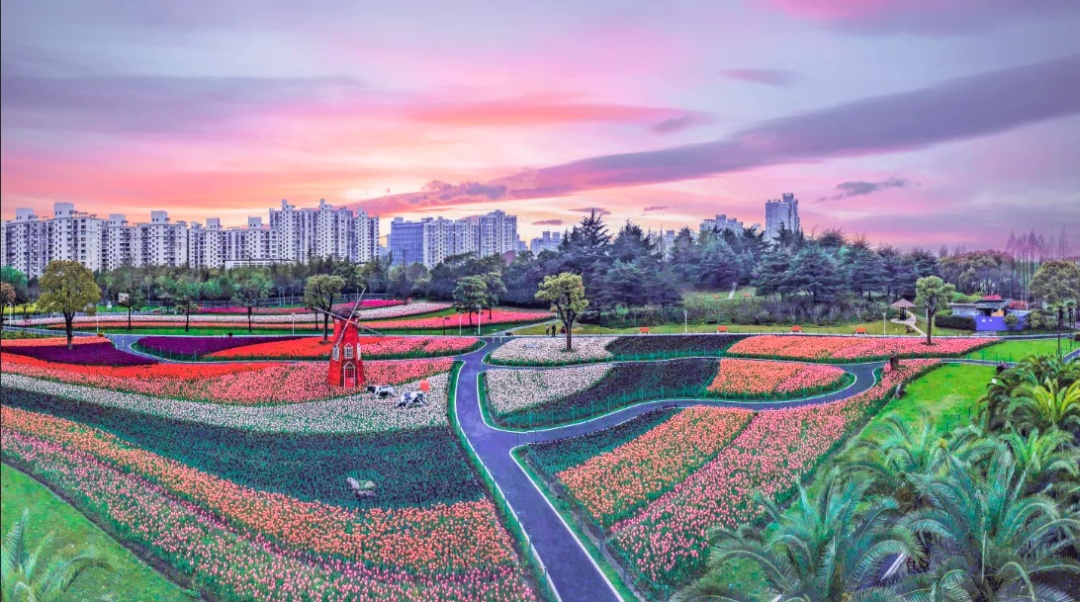 当千年花朝文脉与都市脉搏共振,大宁公园以花海为幕布,绘就一幅“生态+人文”的当代《游春图》。作为静安区文旅地标,大宁公园在本次花朝节期间,以郁金香、樱花、海棠、白玉兰的天然花期作序,沿1公里“芳华主线”铺陈国风盛宴,植入花田禧市、非遗市集、华服展陈、文化手作沙龙、民俗表演舞台,每一步都踩中传统文化与现代美学的和弦。