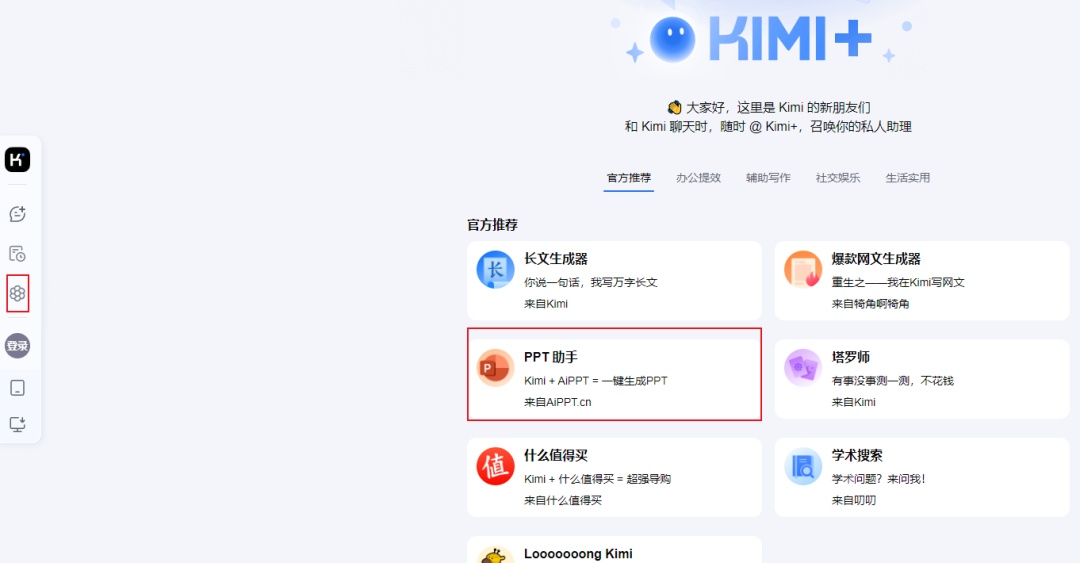 打开Kimi的官方网站:kimi.ai,找到Kimi+,选择PPT助手,把生成的文本复制进来,Kimi会根据“文本大纲”条分缕析,完成后点击一键生成PPT。