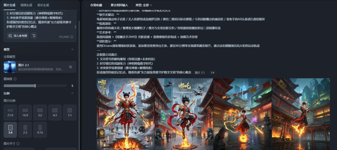 登录即梦官网,点击“图片生成”,粘贴提示词。根据海报用途选好比例、模型等参数,比如竖版海报可选3:4。