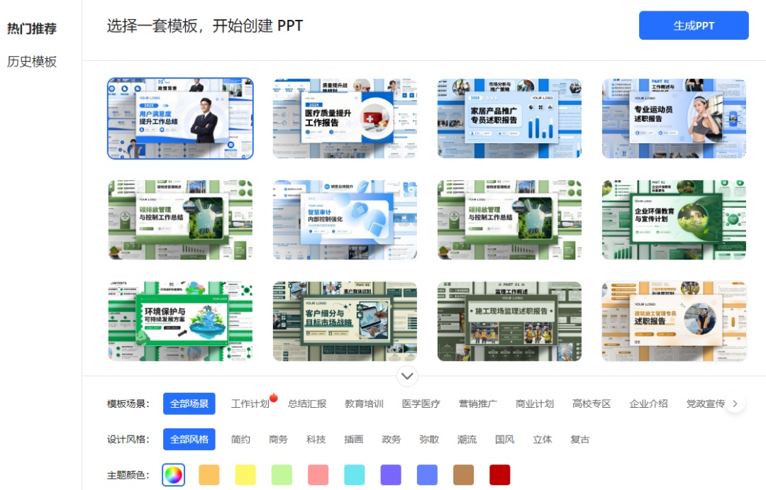 选择自己喜欢的模版,等待几秒钟,即可生成PPT。