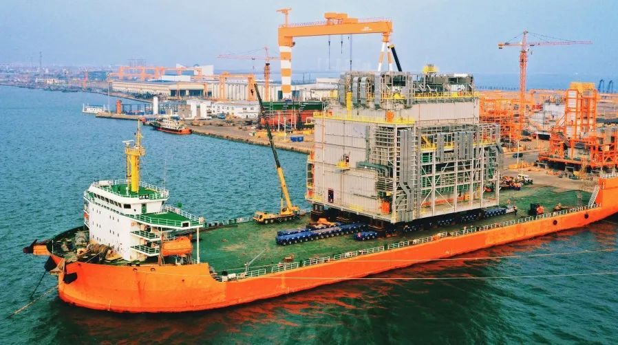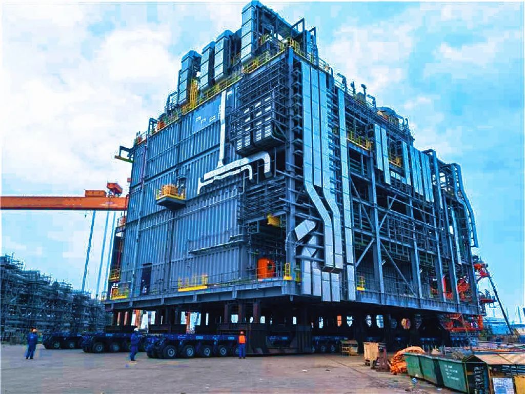 FPSO(浮式生产储卸油装置)项目该电器模块装置重达3562吨,长40米、宽32米、高35米,是目前全球FPSO最重的电器模块。执行过程中,团队克服了超限船舶进港靠泊水深不足和码头吨位限制的挑战,实现船舶安全靠泊、高效滚装装船。